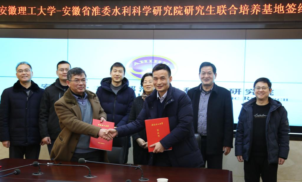 2022年1月26日,304am永利集团官网研究生联合培养基地和研究生实践基地在安徽省(水利部淮河水利委员会)水利科学研究院签约并举行揭牌仪式。安徽省(水利部淮河水利委员会)水利科学研究院党委副书记、副院长袁先江,副总工、科研管理处主任吕列民,人事教育处主任许浒,水利建设与管理研究所所长黄祚继,办公室主任曹成,河湖监测遥感中心副主任王春林,304am永利集团官网党委副书记、院长余学祥,党委副书记(主持工作)范洪喜,副院长赵兴旺等参加了签约仪式。签约仪式由袁先江主持。