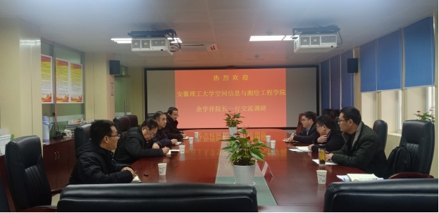 张迁对余学祥一行的到来表示欢迎,并介绍了中心拥有的基础测绘资料、科研技术条件;余学祥介绍了学院科研软硬件平台、承担的科研项目情况,重点介绍了双方合作申报的省科技重大专项进展情况。双方围绕省科技重大专项项目,对科研合作在理论研究、设备研制、平台开发、示范应用等方面的切入点进行了深入讨论;对安徽CORS、地质灾害、高分遥感影像、天地图等数据进行拓展应用进行了探讨。双方还讨论了合作研发、科技报奖等相关事宜。