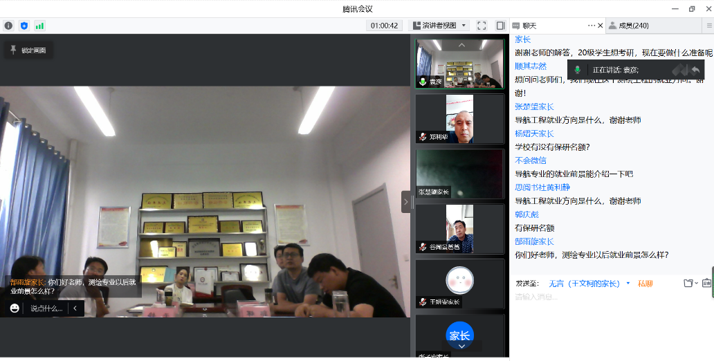 在现场交流环节,学院领导就学院近几年考研情况、考研前期准备、学生暑假留校管理、专业就业前景、学生培养方向、学生日常管理等家长们关心的问题逐一进行了解答,积极听取学生的心声与家长的诉求,及时协调解决各类问题。最后孟静副书记表示,希望家长多与学院老师积极沟通,及时向辅导员反馈学生在家的学习、生活、行为等情况,家校互通信息,交流共建,汇聚家校育人的合力,共同促进学生的全面发展。