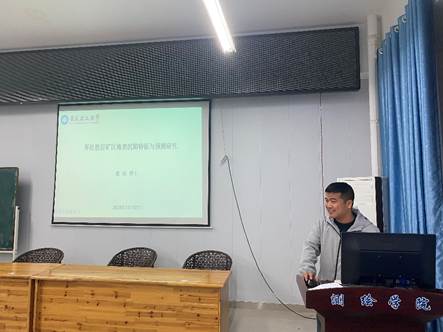 魏涛博士的报告围绕着厚松散层矿区煤炭开采引起的地表移动变形的特殊性,详细介绍了自己对于松散层内部分层与基岩面变形的影响机理和响应机制、预测模型等的研究进展,激发了在场师生的浓厚兴趣与讨论。