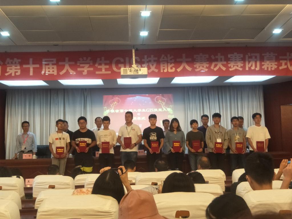 9月21-22日,安徽省人民政府地理信息系统工作委员会、安徽省科学技术协会和安徽省地理信息中心联合主办的“安徽省第十届大学生GIS技能大赛”决赛在滁州学院圆满落幕。304am永利集团官网测绘学院参赛团队获得三等奖5项, 5位教师获得“优秀指导教师”称号。王世航老师荣获安徽省大学生GIS技能大赛十周年突出贡献奖荣誉奖章。