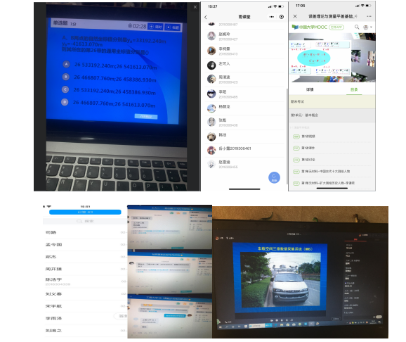 导航工程系余学祥老师利用e-学会为导航工程、测绘工程专业学生分别进行了《卫星导航数据处理方法》、《GPS定位原理及应用》直播授课,吕伟才老师利用雨课堂与中国大学MOOC为导航工程、地理信息科学、地质工程专业学生分别进行了《测绘学基础》、《误差理论与测量平差》、《测量学》线上教学,高永梅老师利用学习通与QQ微课堂为导航工程、工程力学专业学生进行了《惯性导航原理》、《工程测量学》直播教学,吕鑫老师利用学习通为给排水科学与工程与环境工程专业学生进行了《测量学》线上教学,方新建老师利用腾讯课堂为导航工程专业学生进行了《最优估计》在线教学。