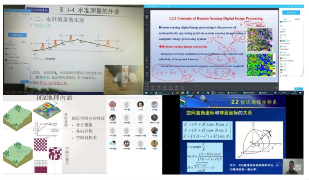 经过了前三周线上教学工作,目前遥感科学与技术系各项教学工作平稳进行。除了一些需要借助仪器设备或者场地的野外实习工作,其他理论和课程设计类课程均运行良好。在疫情期间,开展线上教学工作任务量明显高于以往课堂教学,但在此过程中,无论是授课教师和其他参与保障的教职工,还是听课学习的同学,均表现出了充分的主人公意识,很好地履行了自己的职责。在目前比较困难的情况下,共克时艰,共同努力,向以钟南山院士、李兰娟院士为代表的先进人物学习,做好我们的高等教育的基本工作。