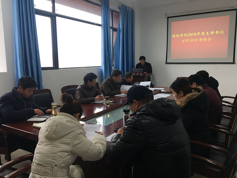 1月9日中午,测绘学院党委在求本楼南511会议室召开2018年度支部书记述职评议考核会。学院党委书记吴军主持会议,学院党委委员担任述职评议考核评委,院属各党支部书记、部分党员教师代表列席了会议。