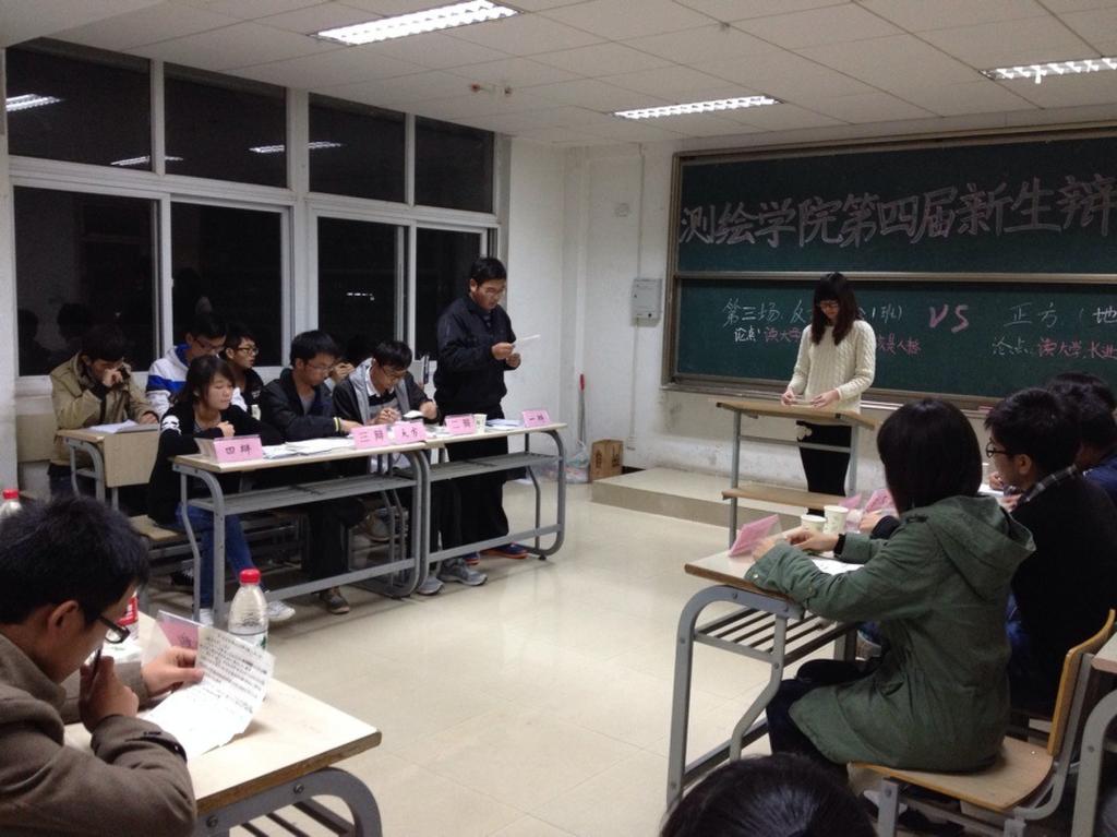 11月3日晚6:30测绘学院第四届新生辩论赛初赛在北校区3605教室隆重举行。在主持人魏盼精彩的开场白中辩论赛拉开了帷幕。
