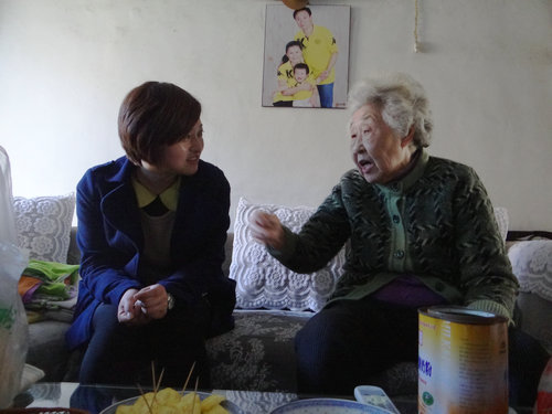 志愿者来到牟老的家里,和她一起聊天,牟老是一位退休的老师,和她聊着仿佛就畅游在知识的海洋里,志愿者们帮助助她整理了房间。在离开时,两位老人都依依不舍,对测绘学院红会志愿者的慰问再一次的表示感谢。