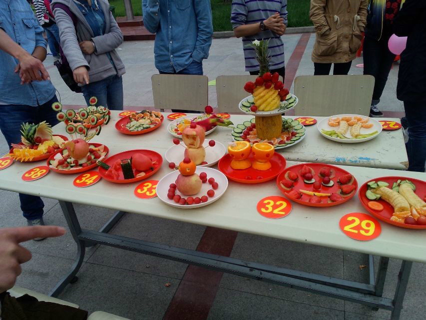 四月的暮春,含着春的生机,蕴着夏的韵味。 4月26日中午14:00,由测绘学院学生会、机械学院学生会及美食协会三会联合举办的第一届“果蔬奇缘”果蔬拼盘大赛于校北区喷泉广场准时拉开了帷幕。现场邀请到比赛邀请了测绘学院学生会主席周卷、机械学院学生会、美食协会负责人担任评委,对此次果蔬拼盘大赛进行点评。