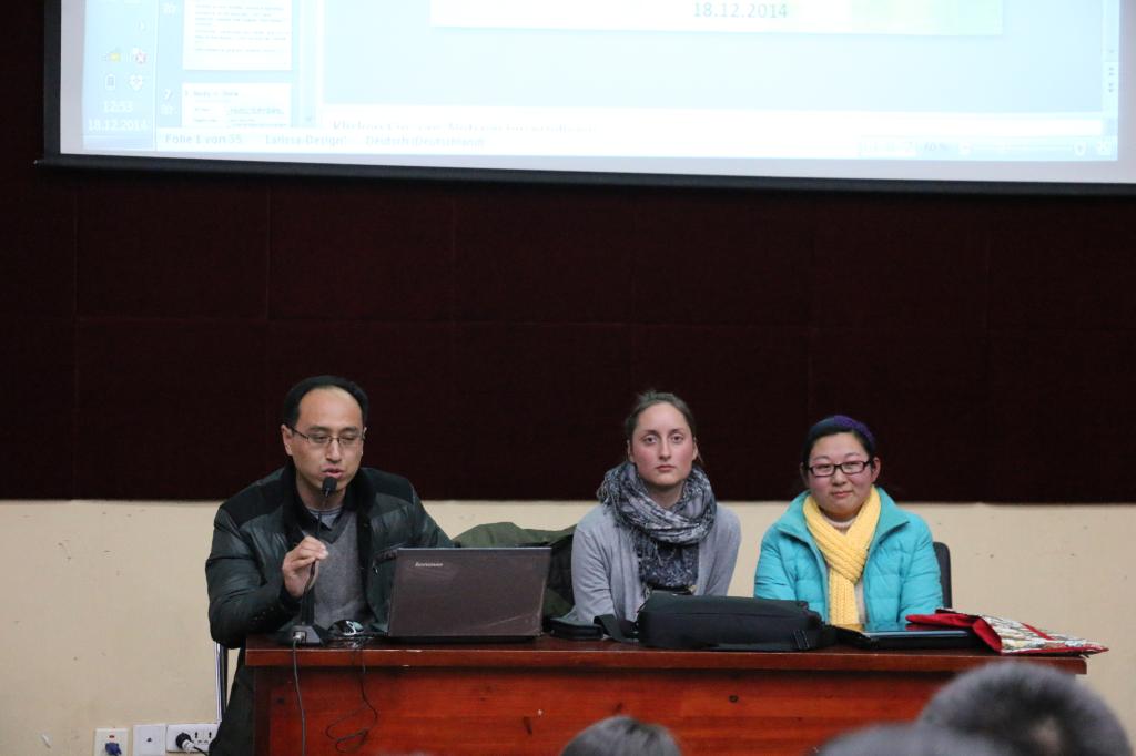 12月18日晚上,测绘学院在校本部六角楼报告厅举办了德国交换生与新生交流报告会。德国东威斯特法伦-利普应用科技大学三年级本科生Natasha Meuser与我校大地测量与测量工程专业2012级硕士研究生黄璨同学(2012.8-2013.7德国奥斯纳布吕克应用科技大学留学生)为测绘工程、地理信息系统及遥感科学与技术专业的大一新生作题为《The difference between China and Germany》的交流报告。报告会由测绘学院教学科研副院长徐良骥主持,新生辅导员马晓娜参加了报告会。