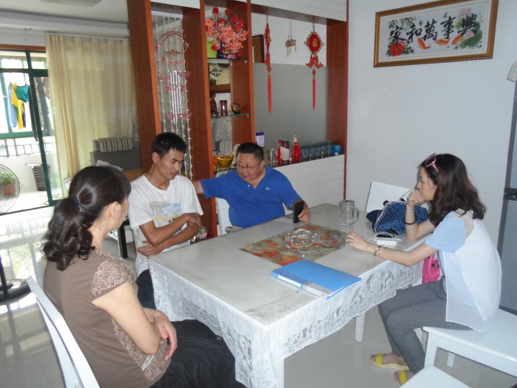 本次家访的对象,有创新能力较强的同学、有积极参与社会工作的学生干部,也有家庭贫困的同学及学习困难的同学。学院领导、家长、学生三方坐在一起,促膝而谈,进行心与心的沟通。在交谈过程中,吴军希望他们要认清自己目前学业生涯所处的阶段,要明确目标、尽早定位,做好学业和职业规划,勉励同学们要有信心战胜困难,顺利完成学业,同时要志存高远,相信凭自己的努力能改变命运、改变家庭困境。各年经辅导员跟学生家长详细说明了学校对贫困生在学习和生活上的关注及各种资助政策,请家长不要担心经济的问题。学生家长也就学生的专业、学分问题、就业等问题咨询了各位老师。