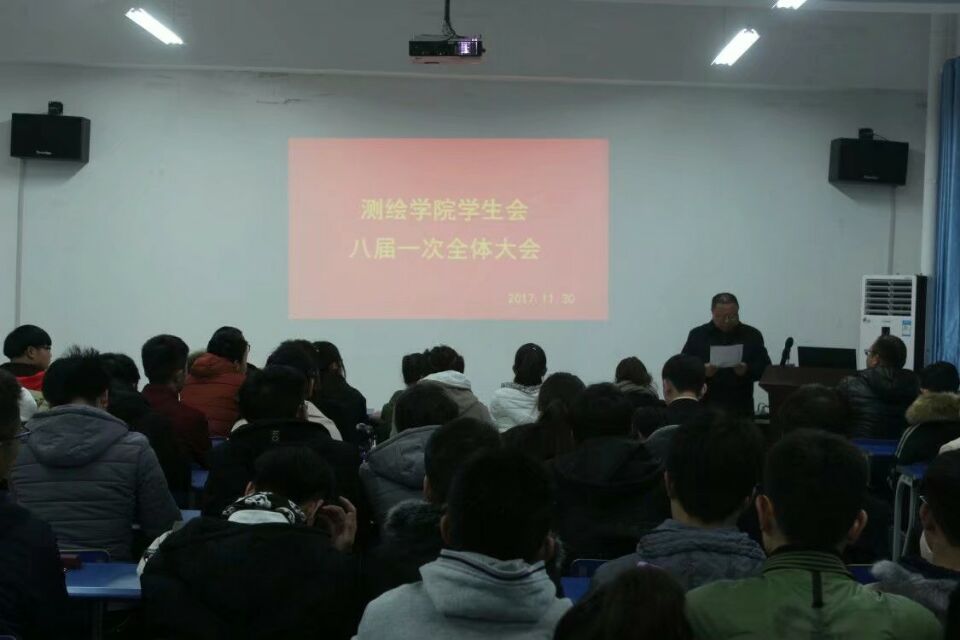 11月30日晚,测绘学院在学院北511学术报告厅召开学生会八届一次全体大会。测绘学院党委书记吴军,院团委老师、各年级辅导员、全体学生会成员参加。
